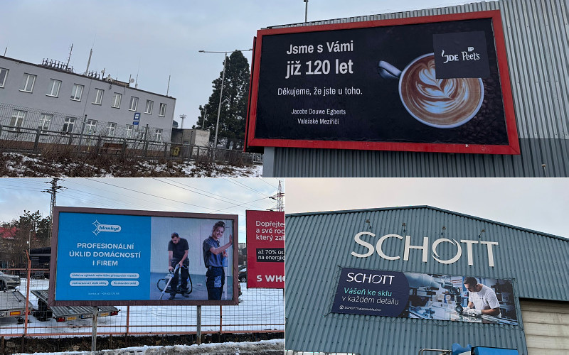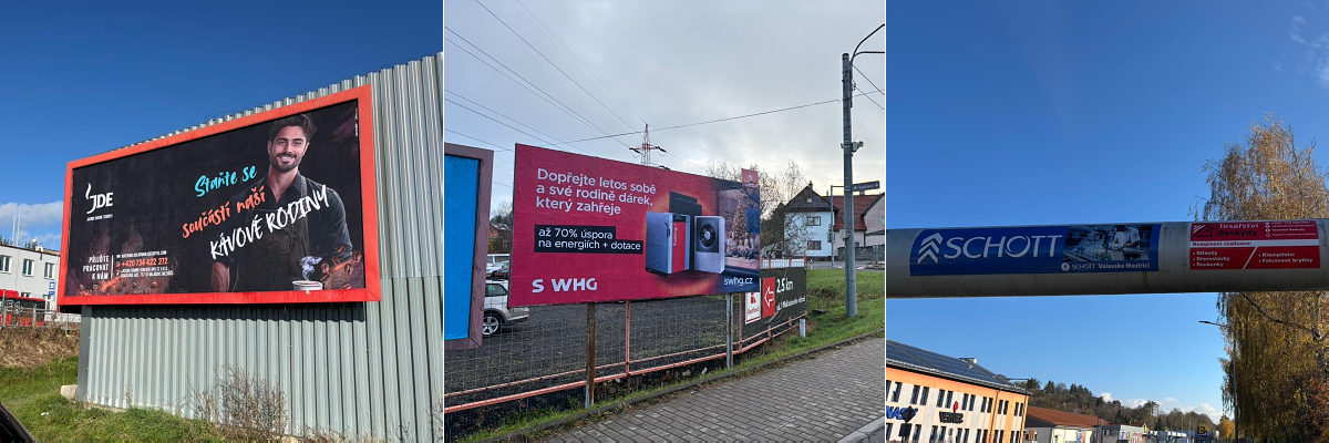 » Instalované reklamy pro SWHG, Jacobs Douwe Egberts a SCHOTT ve Valašském Meziříčí.