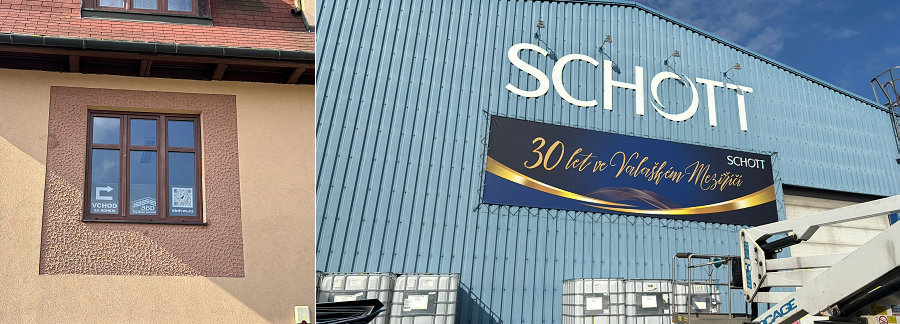 » Instalovaná reklama pro SCHOTT ve Valašském Meziříčí a polep okna domu SBD v Rožnově p.R.